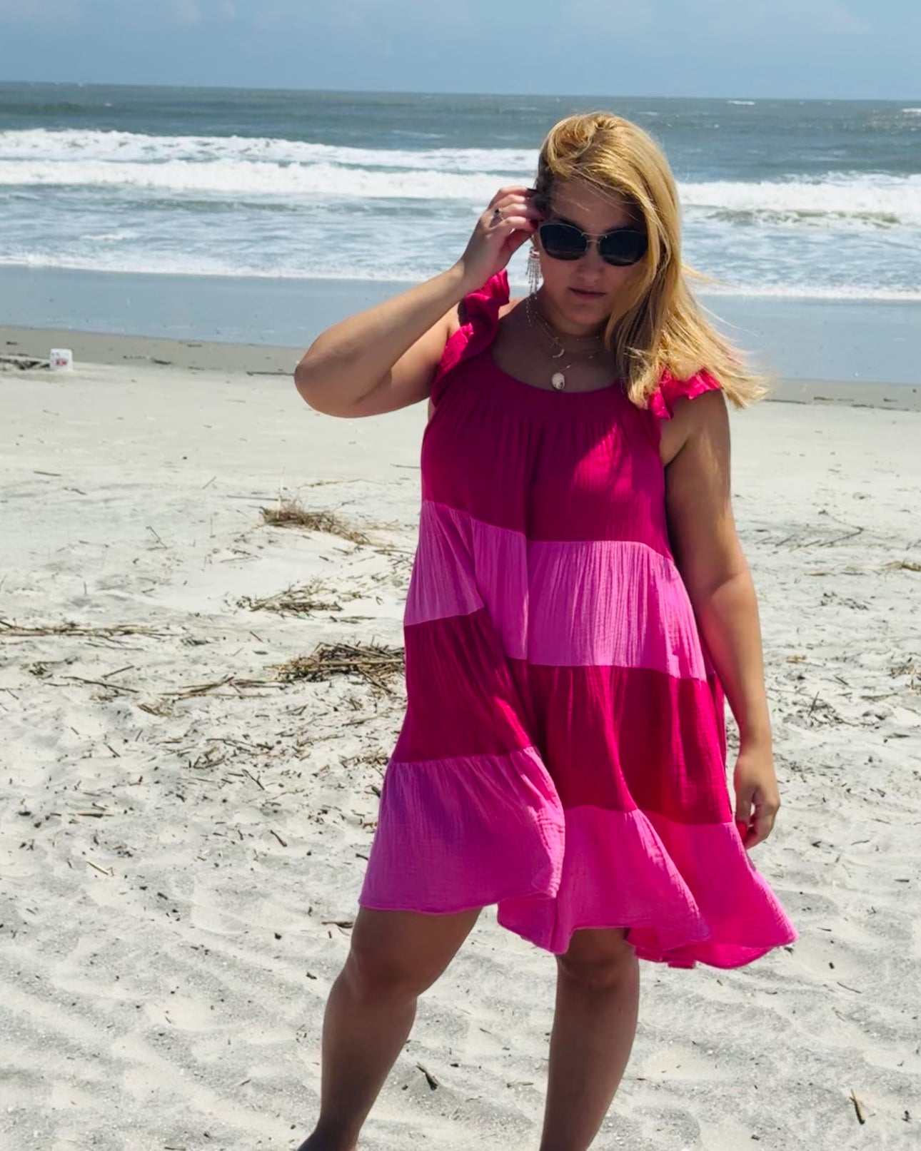 The FLYING TOMATO Rayon Woven Maxi Dress offers a refined, flowing silhouette designed for elegance and comfort. Crafted from soft rayon, this solid-colored ankle-length dress features a delicate cami-style top enhanced with layered sleeves for a subtle, sophisticated detail. The cinched front bodice shapes the waist effortlessly, while the tiered skirt adds volume and graceful movement. A discreet back zipper closure ensures a smooth fit. Perfect for formal occasions or stylish everyday wear, this dress combines quality craftsmanship with timeless design for an elevated wardrobe staple.