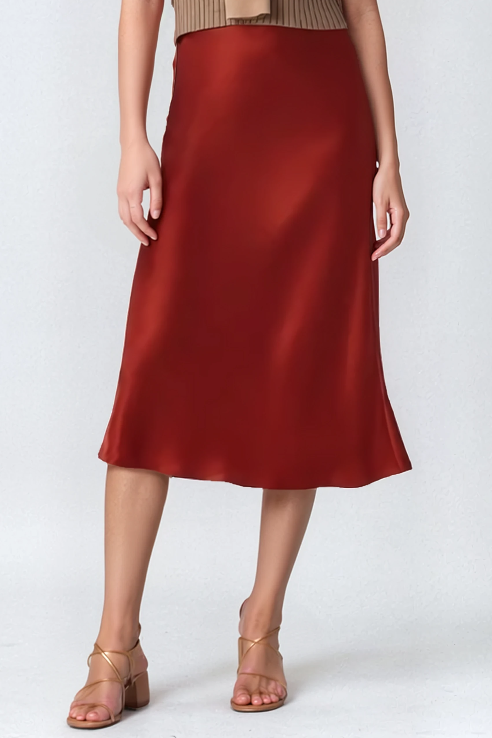 Sudenhaus 100% Silk Midi Skirt - Amber Red