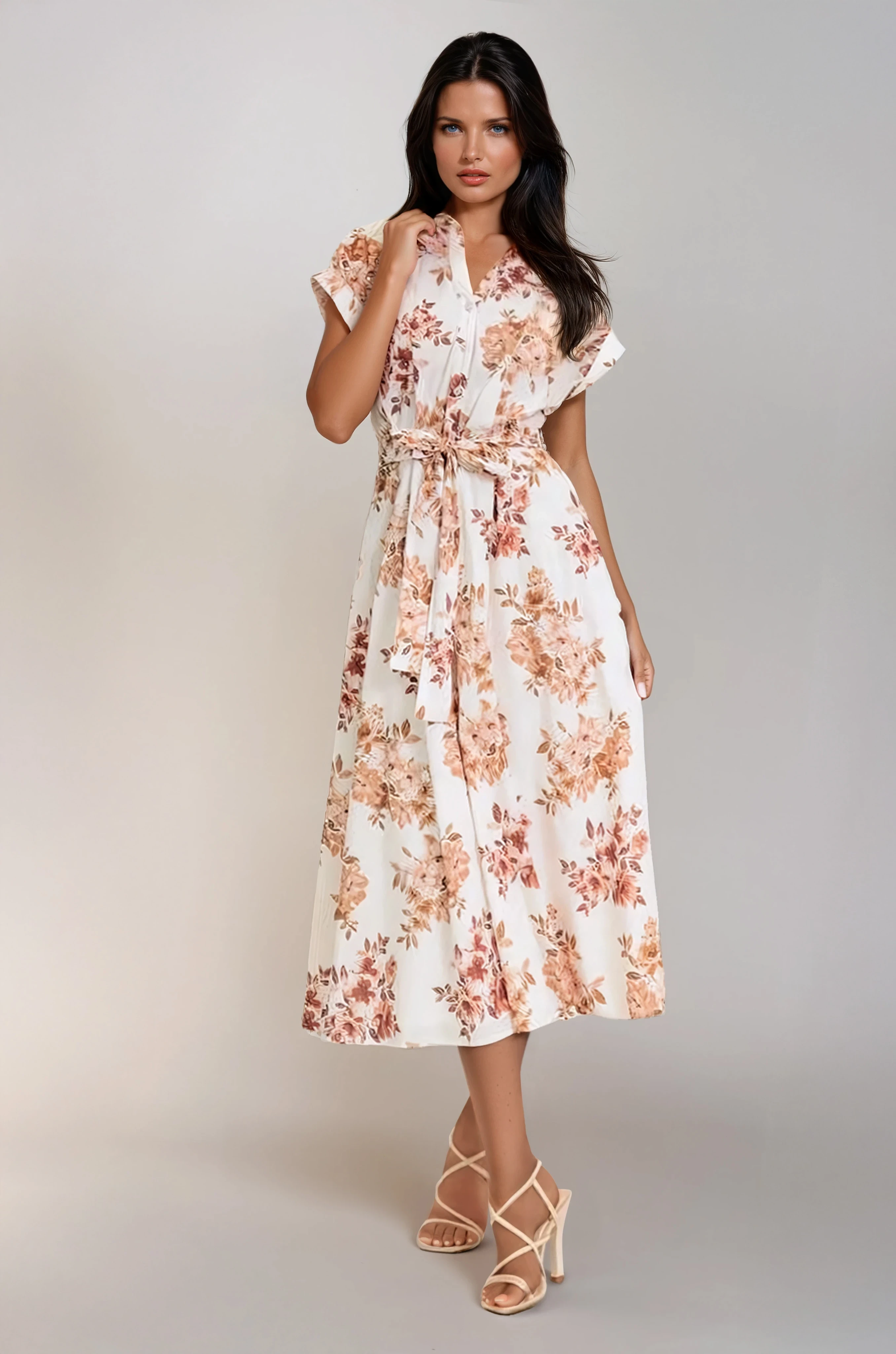 FLYING TOMATO - 100% Cotton Fall Print Midi Dress