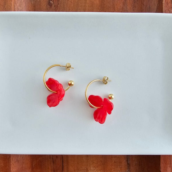 18K Gold-Plated Magnolia Hoops - Poppy Red