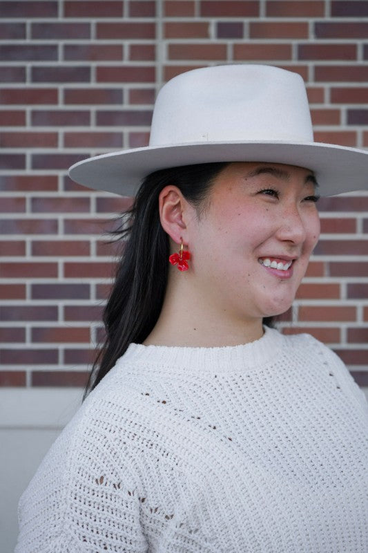 Add a fun twist to your hoop collection with our Magnolia Hoops in Poppy Red! Featuring sleek gold hoops adorned with stunning resin flowers, these earrings bring a bold pop of color to any look. Perfect for turning heads and leveling up your style, they're the ultimate accessory to stand out from the crowd.