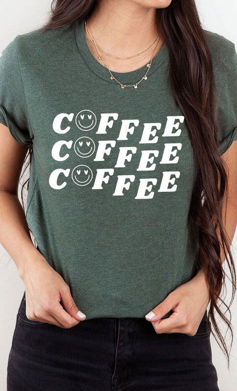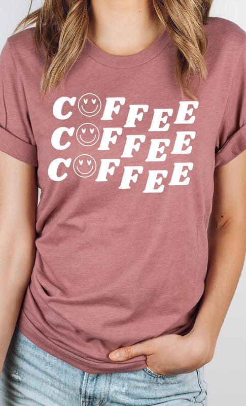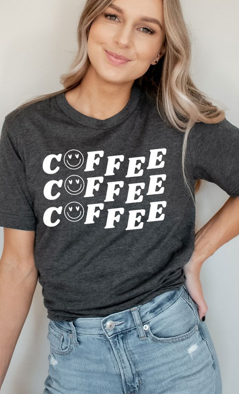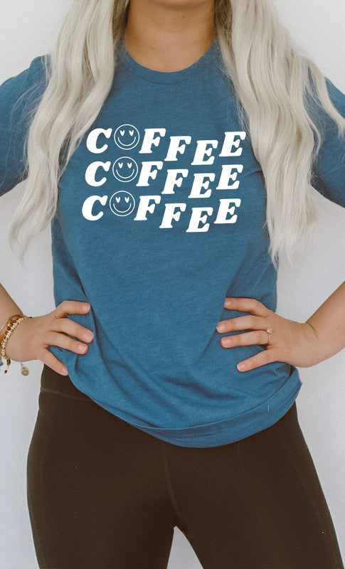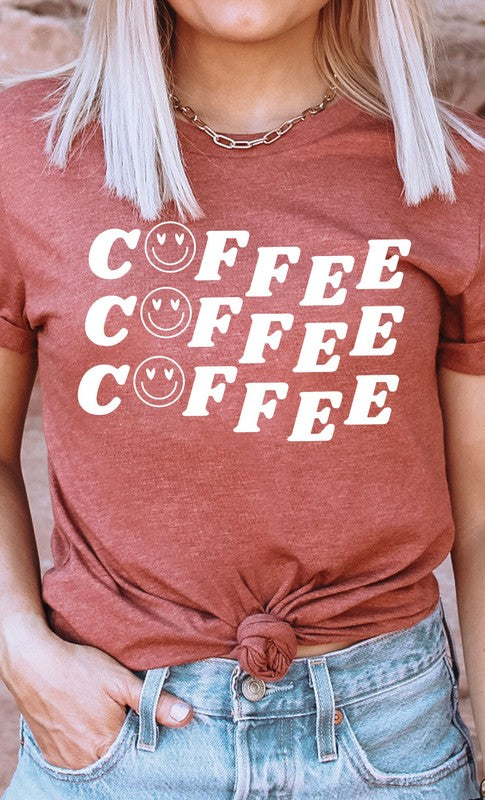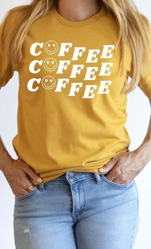 Start your day with a smile in this relaxed-fit graphic tee featuring a cheerful coffee print. Crafted from soft, breathable fabric, it's the perfect everyday essential that pairs effortlessly with jeans, shorts, or loungewear. Available in multiple colors to match your personal style, this tee combines comfort with a touch of caffeine-fueled charm. Whether you're grabbing your morning brew or heading out for casual adventures, this versatile piece delivers laid-back style that works for any occasion.